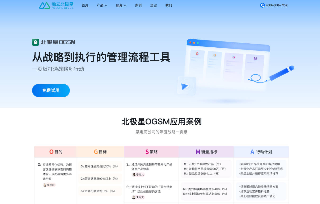 北极星OGSM是融云北极星旗下政策实行产物,是首款OGSM解决软件,一页纸打通政策到活动的OGSM解决用具,OGSM解决体例通过三大中心举措:生意计划、生意实行与生意复盘,对企业政策实行深度拆解与细化,确保政策精准落地。